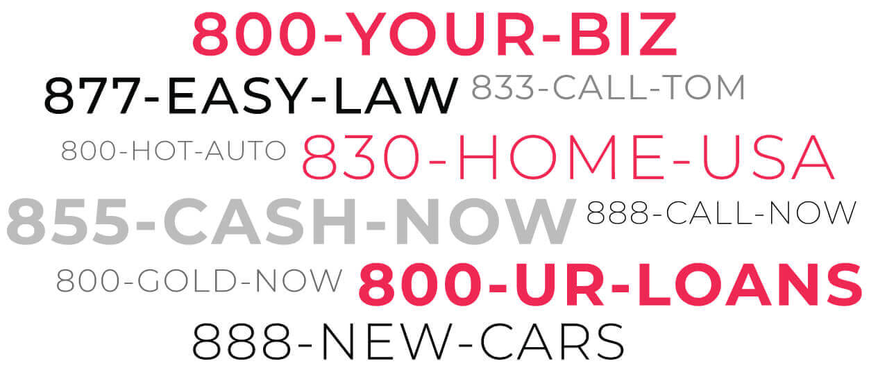 A vanity number is a unique set of numbers or letters that are related to a specific business. The reason behind vanity phone numbers is to set a simple number so that your clients can remember it. The simpler your number is, the easier it is going to be for clients when they want to contact you. Instead of having to look up your customer service number online or on one of your leaflets every time they want to talk to you about an issue that they might have been having. If your curious on how to get a vanity phone number, it's simple. Search from our massive database and buy one in seconds.
